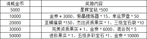 消耗指定数量金币,即可领取对应档位奖励: